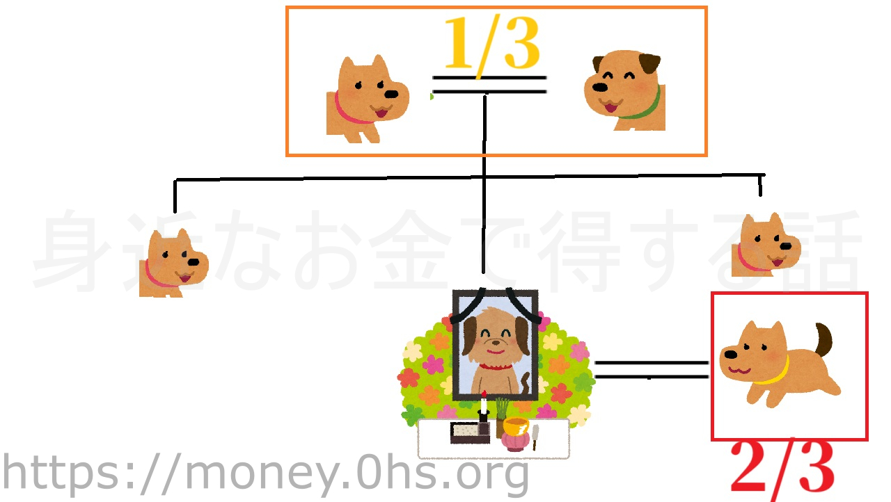 ・遺産の2/3は配偶者が受け取る。