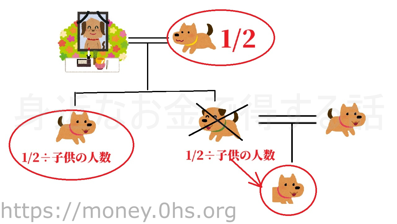 ・遺産全体の1/2が子供の数で分割される。